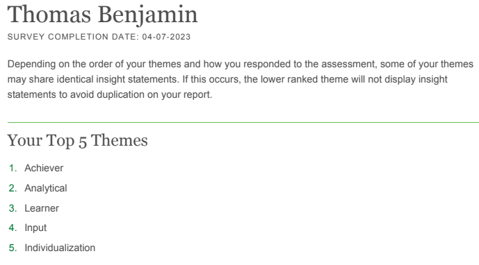 - Learner– People who are especially talented in the Learner theme have a great desire to learn and want to continuously improve. In particular, the process of learning, rather than the outcome, excites them.